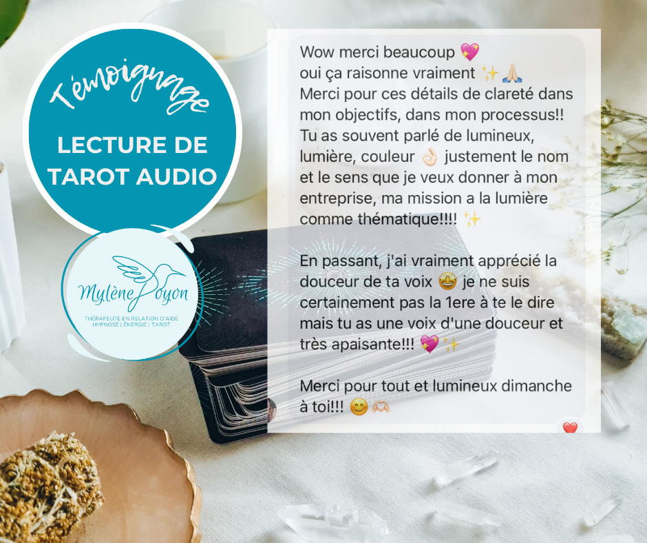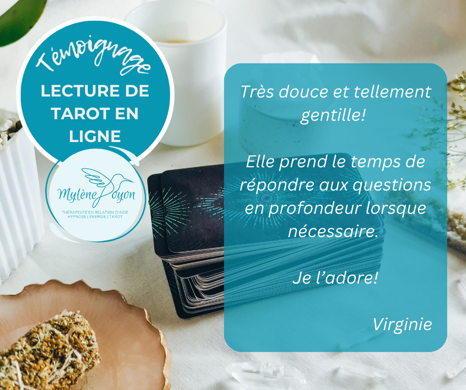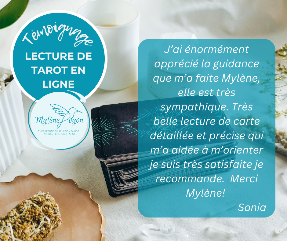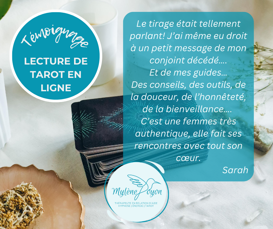 Que vous traversiez une période de transition, que vous cherchiez à surmonter des obstacles personnels ou que vous souhaitiez simplement approfondir votre connaissance de vous-même, la tarot-thérapie est un outil puissant à votre disposition. La tarot-thérapie n’est aucunement divinatoire.